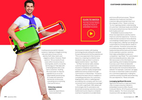 Embedded insurance arises from these new expectations and the need to improve customer experience . “ It aims to make insurance products more robust by consolidating multiple types of coverage into a single policy , offering cost savings and customisations to fit the specific needs of each customer . Yet all the consumer sees is a simple and easy add-on that removes hassle and does all the hard work for them ... It ’ s this seamless customer-centricity that makes embedded insurance so competitive ,” says Marat . “ For customisation and more bespoke policies , data is key . We owe access to this information to open banking , which enables third parties to access a user ’ s financial data ( with consent ) and make embedded services like insurance far more personalised and relevant . For example , customers can apply for a loan or check their credit score within an e-commerce application , making the customer journey smoother and enhancing the user experience ,” Marat concludes .