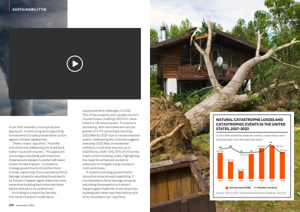 “ There ’ s hope ,” says Rory . “ Flood Re and others are addressing the ‘ build back better ’ issue with insurers .” This approach encourages rebuilding with improved materials and designs to better withstand future climate impacts . “ A resilience strategy governments should be more actively supporting . If you experience flood damage , properly rebuilding the property so it doesn ’ t happen again makes far more sense than building back what was there before with all its incumbent risk .”