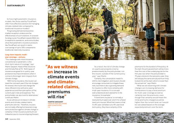 Long-term impacts , multiyear coverage – and you “ The challenge with most insurance , conventional or parametric , is the short-term nature of coverage ,” says Martin Sarjeant , Head of Risk Solutions and Climate Risk at FIS . “ Both types of insurance are great for in-policy-year protection but have limitations when it comes to the longer-term impacts from climate change .