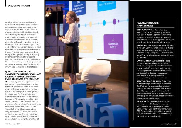 which enables insurers to deliver the level of personalised services , products and experience that new generations expect in the modern world . Fadata is making data accessible and structured and providing the means to process data in real-time . We have embraced a community ethos and developed an ecosystem of specialist partners , many of which add features powered by AI to our core system . These expert data-collecting tools provide our users with the means to improve their services , from expediting straight-through-processing to enabling automated marketing for triggering relevant communications to create value . We are also utilising AI to develop and test software . AI tools will mature quickly , and in turn , help to mature software faster .