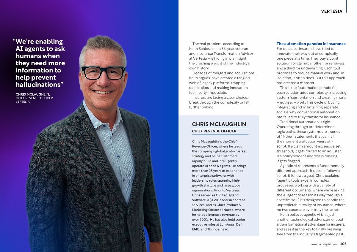 Keith believes agentic AI isn’ t just another technological advancement but a transformational advantage for insurers, and sees it as the key to finally breaking free from the industry’ s fragmented past.