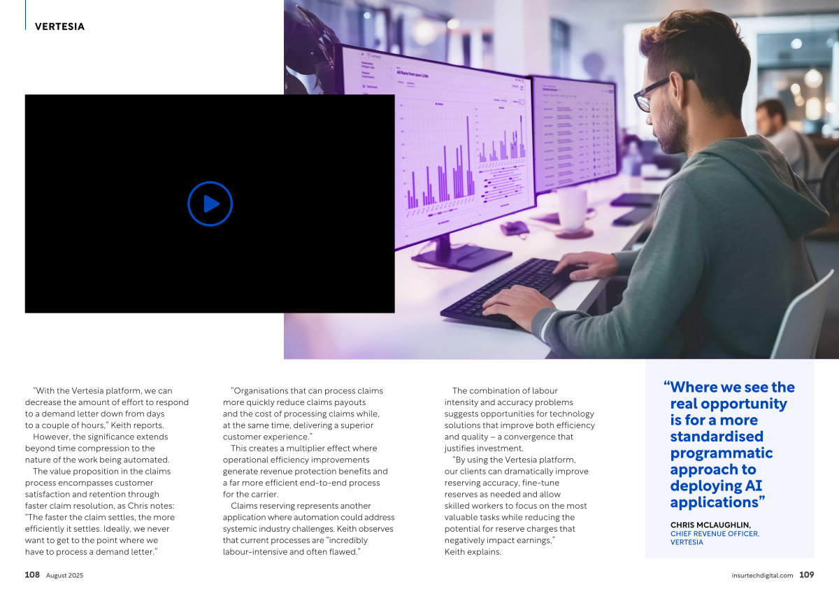 Claims reserving represents another application where automation could address systemic industry challenges. Keith observes that current processes are“ incredibly labour-intensive and often flawed.”