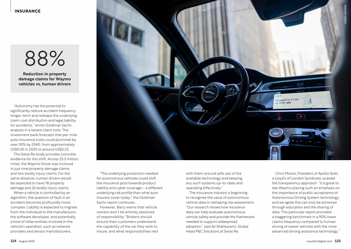 The insurance industry is beginning to recognise the value of autonomous vehicle data in reshaping risk assessment.“ Our research shows how insurance data can help evaluate autonomous vehicle safety and provide the framework needed to support widespread adoption,” said Ali Shahkarami, Global Head P & C Solutions at Swiss Re.