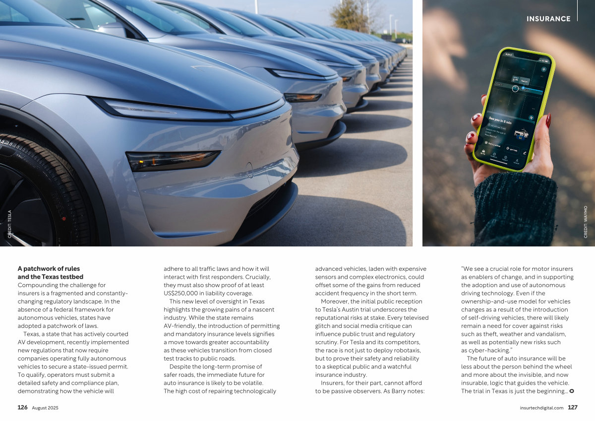 The future of auto insurance will be less about the person behind the wheel and more about the invisible, and now insurable, logic that guides the vehicle. The trial in Texas is just the beginning …
