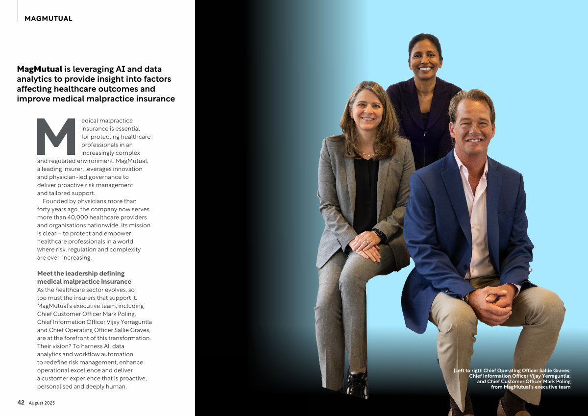 ( Left to rigt): Chief Operating Officer Sallie Graves; Chief Information Officer Vijay Yerraguntla; and Chief Customer Officer Mark Poling from MagMutual’ s executive team