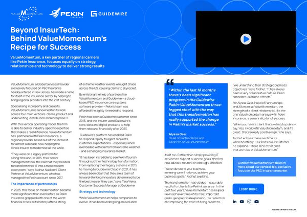 ValueMomentum, a key partner of regional carriers like Pekin Insurance, focuses equally on strategy, relationships and technology to deliver strong results