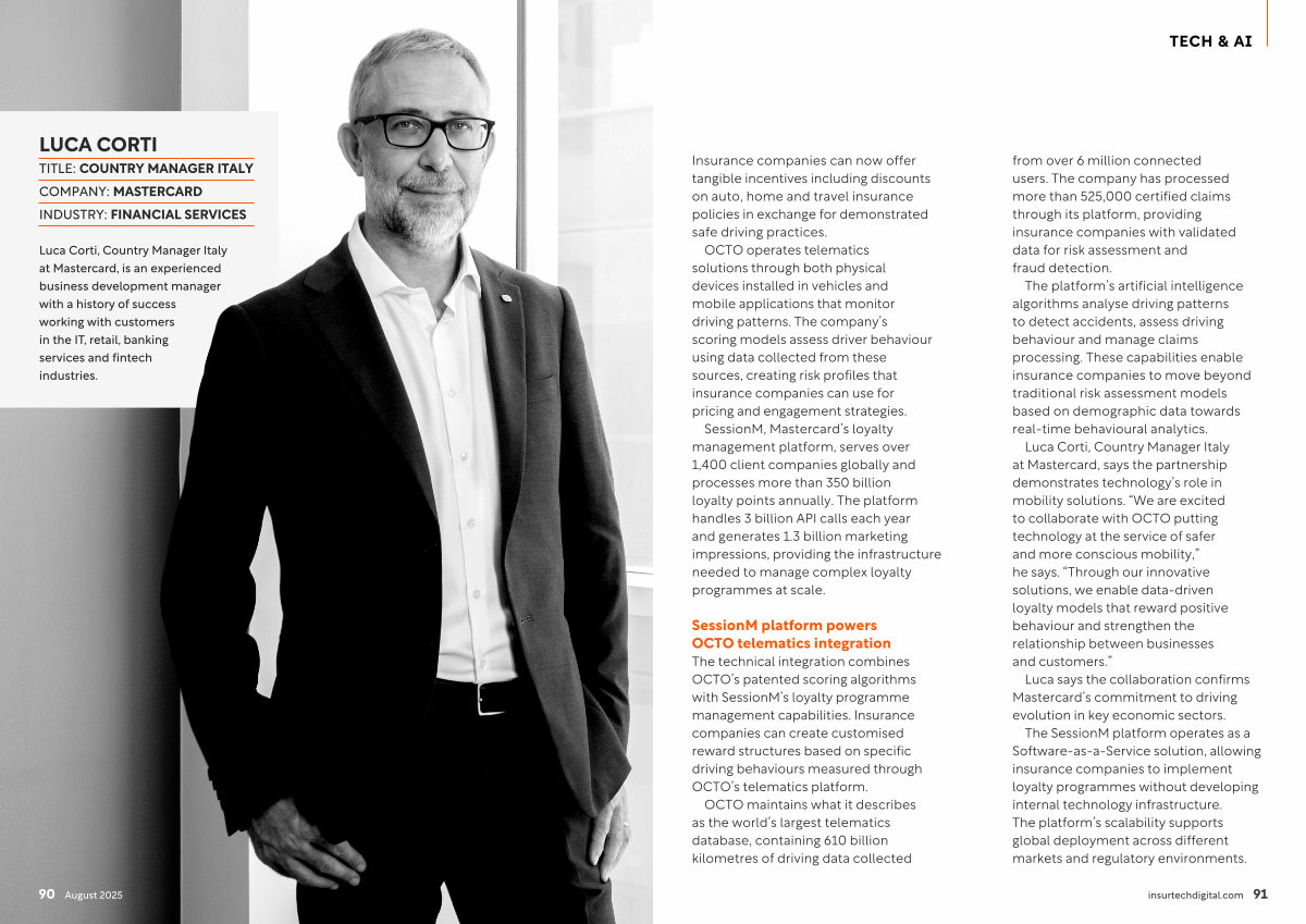 Luca Corti, Country Manager Italy at Mastercard, says the partnership demonstrates technology’ s role in mobility solutions.“ We are excited to collaborate with OCTO putting technology at the service of safer and more conscious mobility,” he says.“ Through our innovative solutions, we enable data-driven loyalty models that reward positive behaviour and strengthen the relationship between businesses and customers.”