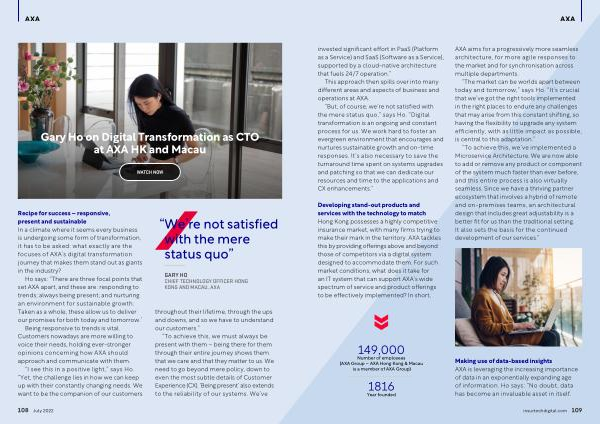 Ho on Digital Transformation as CTO at AXA HK and Macau