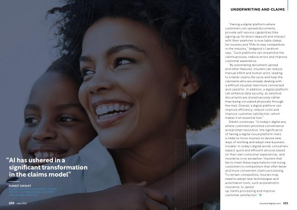 Dikshit continues : “ In today ’ s digital era , where customers prioritise convenience and prompt resolution , the significance of having a digital cloud platform mers is likely to force insurers to devise new ways of working and adopt new business models . In today ’ s digital world , consumers expect quick and efficient services based on their own consumer experiences , and insurance is no exception . Insurers that fail to meet these expectations risk losing customers to competitors that offer faster and more convenient claims processing . To remain competitive , insurers may need to adopt new technologies and automation tools , such as parametric insurance , to speed up claims processing and improve customer satisfaction .” insurtechdigital . com 101