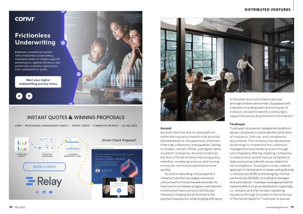 to the back-end reconciliation process amongst brokers and carriers . Equipped with a dynamic founding team and strong set of investors , we look forward to continuing to support Ascend as they transform the industry ."