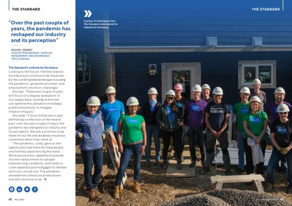 “ The pandemic , sadly , gave us the opportunity to be there for many people and families experiencing the worst . We ' re proud of our capability to provide income replacement for people experiencing a disability , and funds to cover expenses and mortgages for families who lost a loved one . The pandemic showed how critical our products are and will continue to be .” 62 May 2022